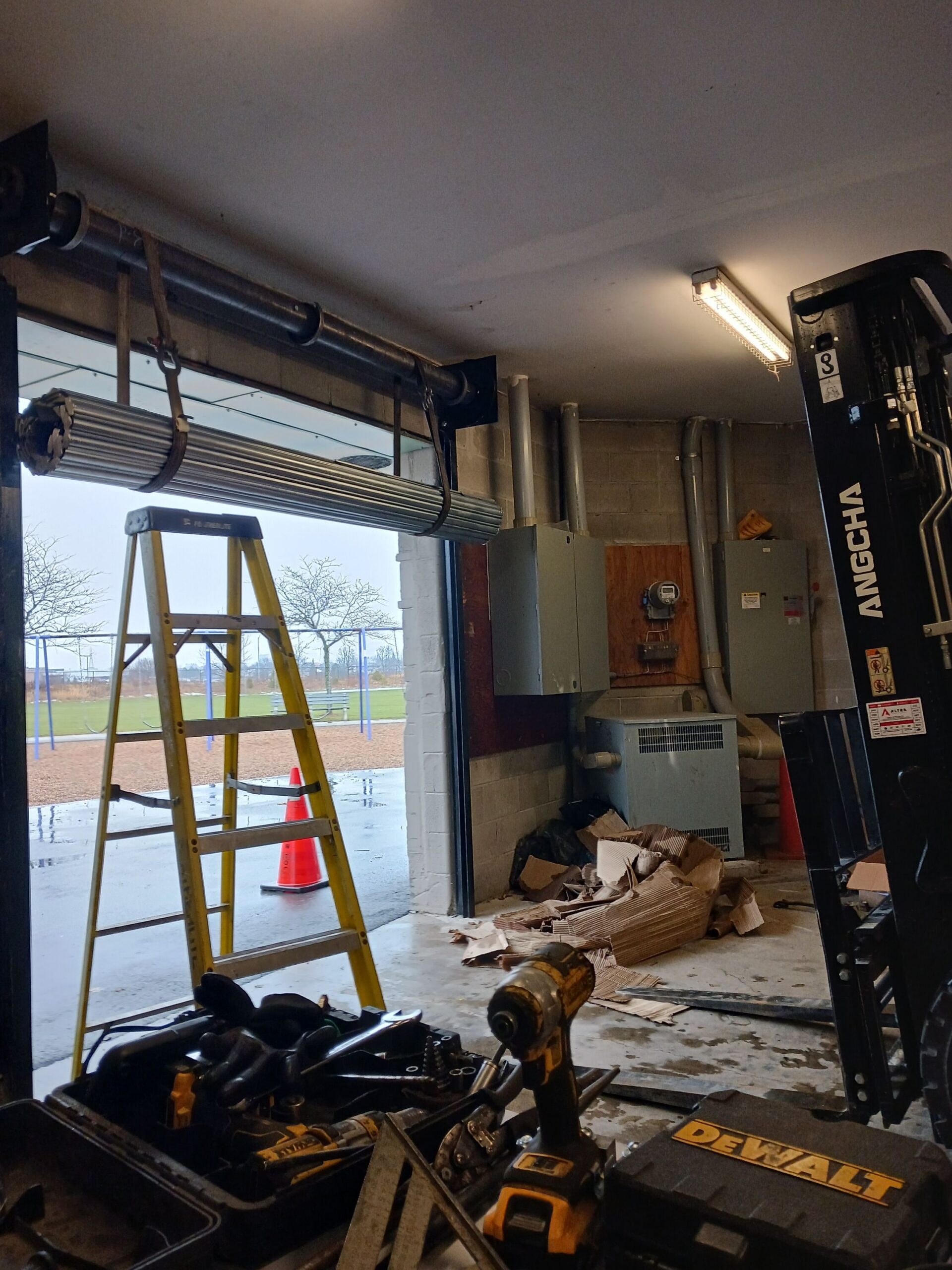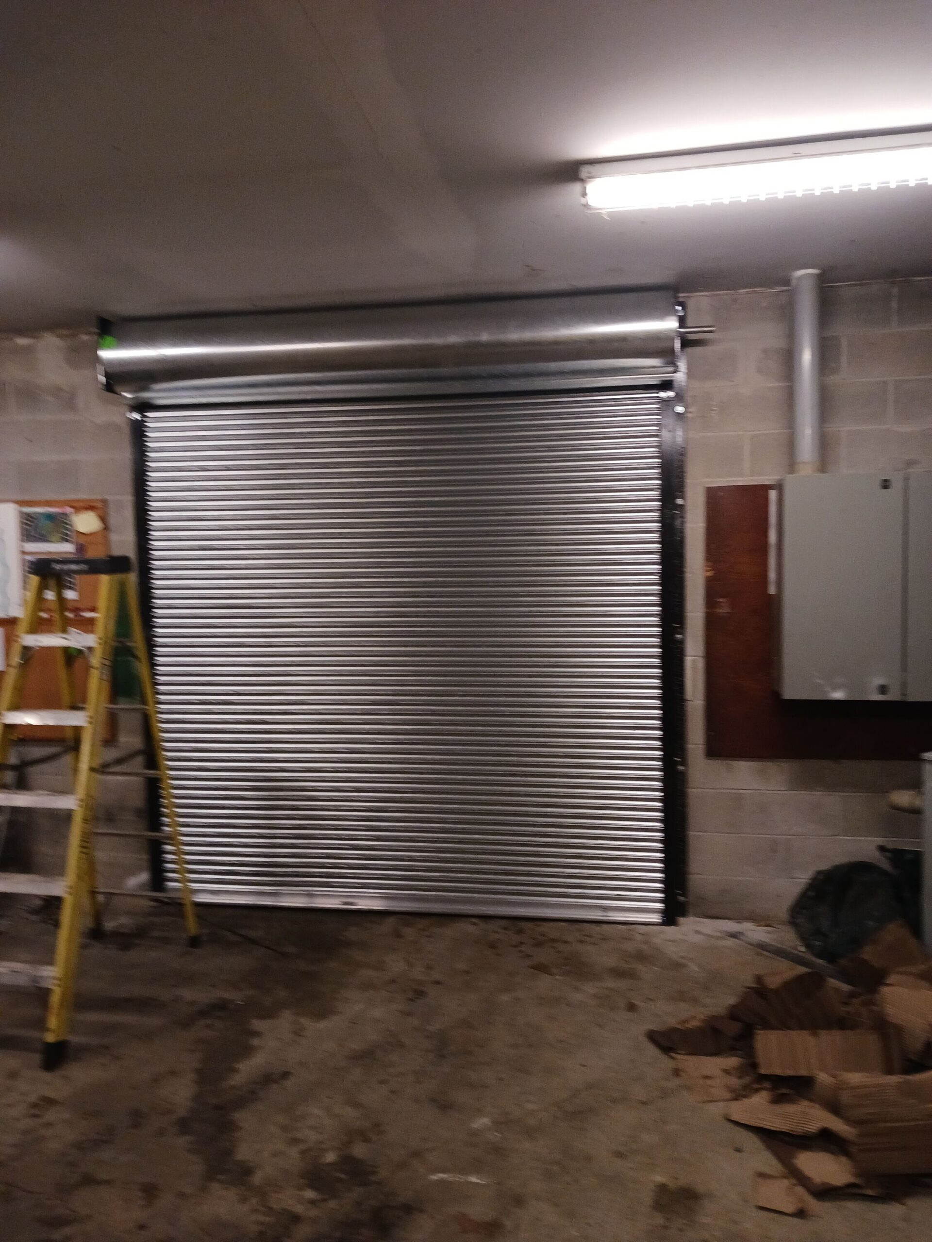 Institutional facilities like schools, hospitals, and municipal buildings demand overhead doors that are secure, durable, and low-maintenance. At this facility, an unprotected opening in a back-of-house utility area needed a reliable rolling steel service door. With concrete block construction and vital utility setups — electrical panels, ladder access — the door was required to seal effectively, operate smoothly in varying conditions, and withstand the rigors of daily use.
