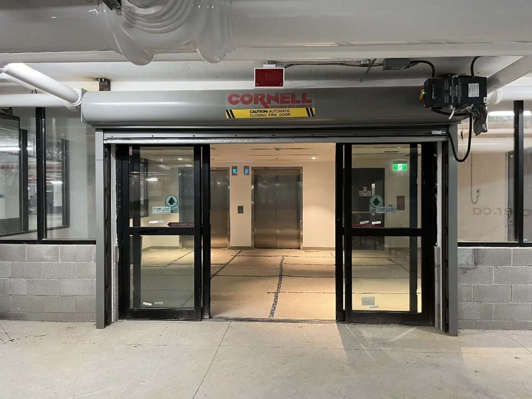 - Four Cornell rolling steel UL/ULC fire-rated overhead doors
